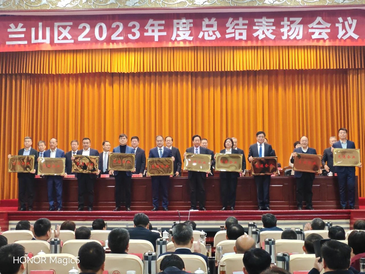 2024年2月19日,蘭山區(qū)2023年度總結(jié)表揚(yáng)會議在區(qū)政府會議中心召開。會上,山東順和商貿(mào)集團(tuán)有限公司榮獲“2023年度現(xiàn)代商貿(mào)物流建設(shè)先進(jìn)企業(yè)”,山東順和物聯(lián)科技有限公司榮獲“2023年度優(yōu)秀科技創(chuàng)新企業(yè)”。集團(tuán)黨委書記趙玉璽,山東順和物聯(lián)科技有限公司常務(wù)副總裁祿春陽參會并上臺領(lǐng)獎。
