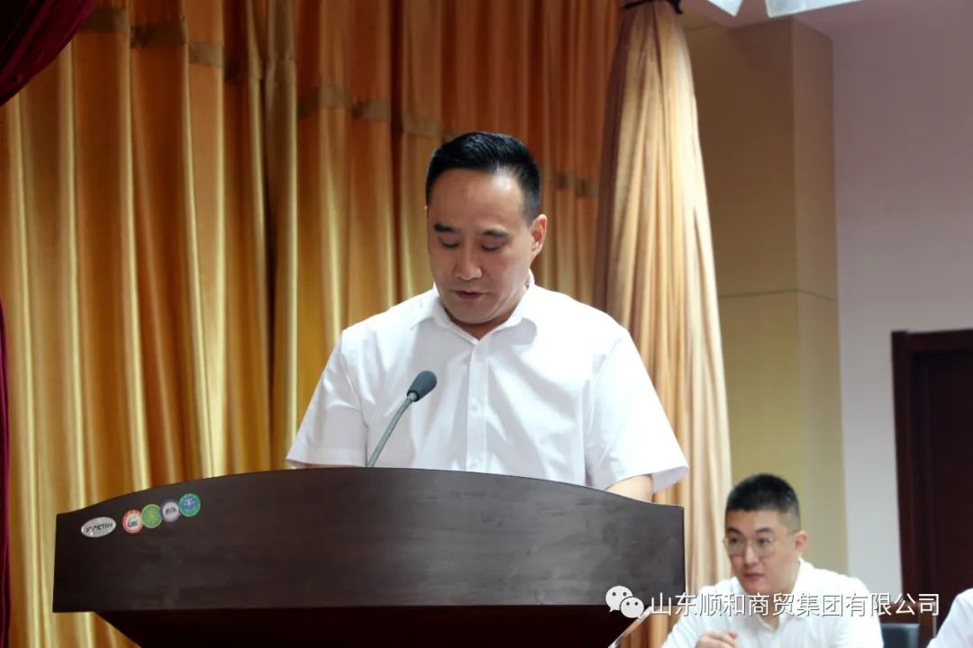 7月27日上午,順和集團(tuán)2022年上半年度工作總結(jié)大會在集團(tuán)15樓會議室隆重召開。集團(tuán)黨委、董事會成員、班子成員、李莊社區(qū)兩委成員、集團(tuán)及其下屬企業(yè)部分干部職工參加會議。大會由集團(tuán)黨委副書記、董事長許大勇主持。 大會在莊嚴(yán)的國歌聲中正式開始。會上,集團(tuán)黨委副書記、總經(jīng)理趙國偉傳達(dá)上級文件:《臨沂商城轉(zhuǎn)型升級實(shí)施方案(2022—2026年)節(jié)選》。順和國際、順和物聯(lián)、臨沂電動自行車市場、集團(tuán)企業(yè)管理辦公室、供應(yīng)鏈金融部、安全管理辦公室、商貿(mào)物流研究院的主要負(fù)責(zé)人依次就上半年重點(diǎn)工作完成情況和下半年主要工作計(jì)劃進(jìn)行表態(tài)發(fā)言。
